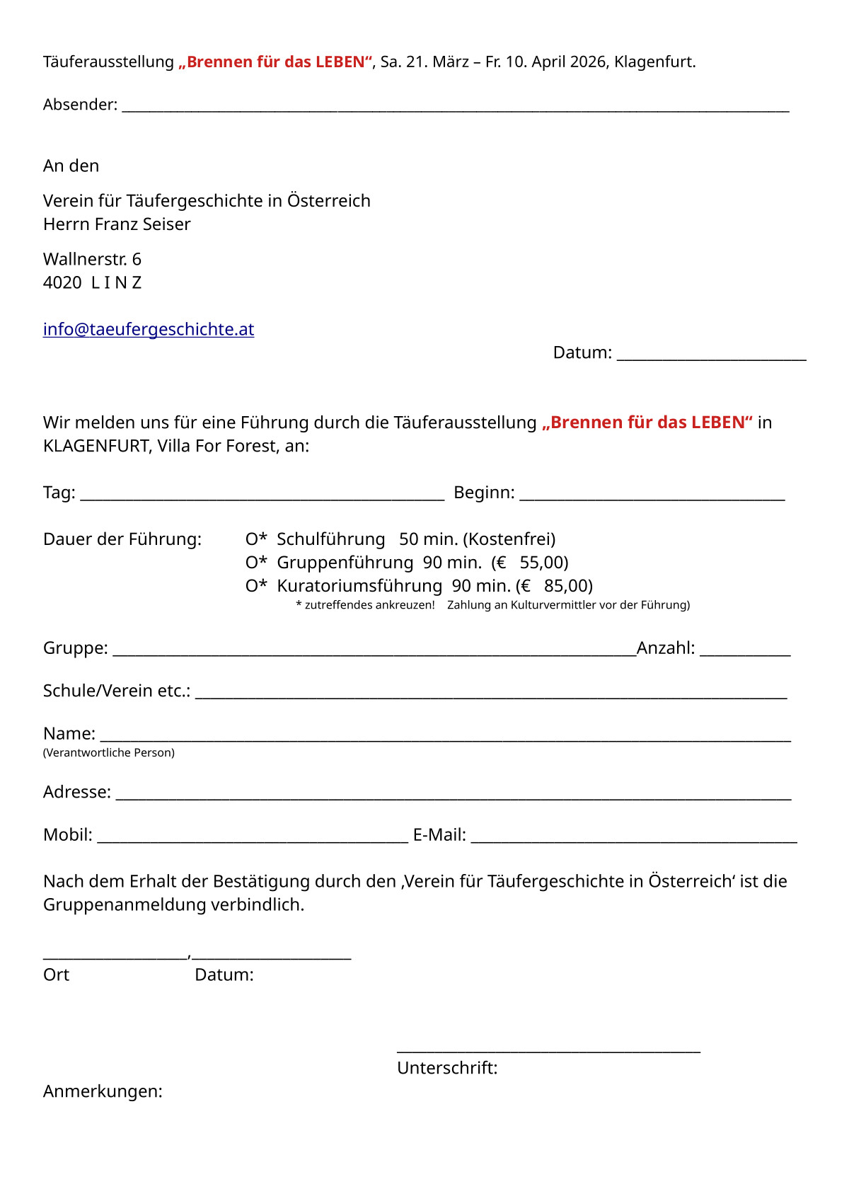 - Errichtung und Betreibung von Täufermuseen